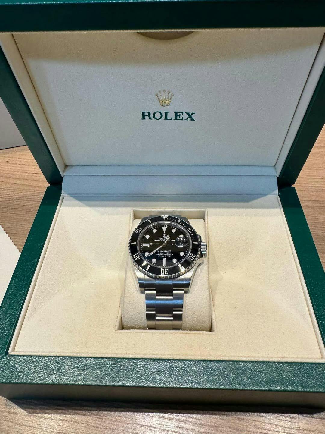 The Rolex Submariner Date in Oystersteel is the ultimate dive watch, combining legendary durability with timeless elegance. This 41mm timepiece features a scratch-resistant Cerachrom bezel, luminescent markers for optimal legibility, and water resistance to 300 meters.